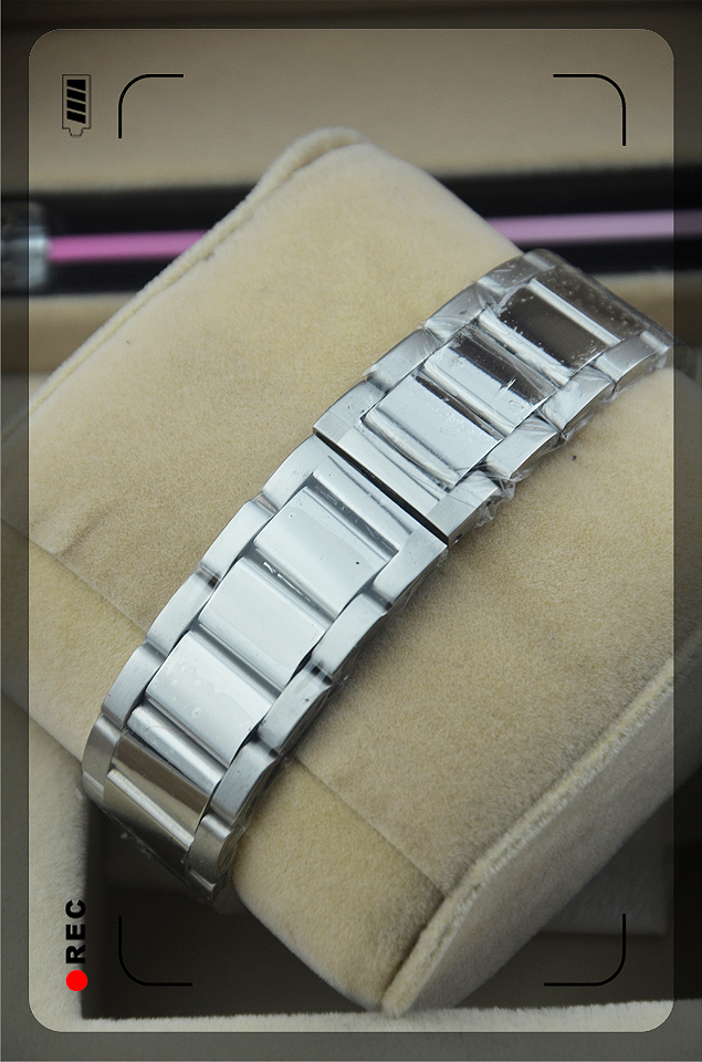 【材質】:高硬度耐磨藍寶石鏡面,全鋼錶殼,銀色錶圈,坦克三株錶帶,蝴蝶雙按扣,黑/白色錶盤,金色錶針,白色羅馬刻度