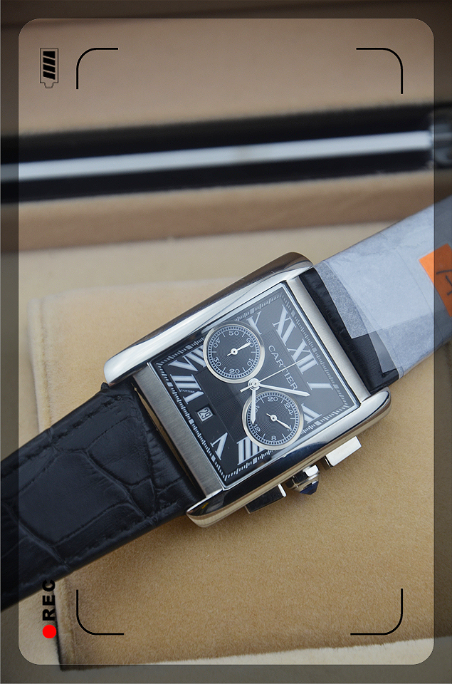 卡地亞Cartier0470日本石英雙日曆方形個性男士腕錶-WATCHES807