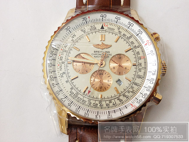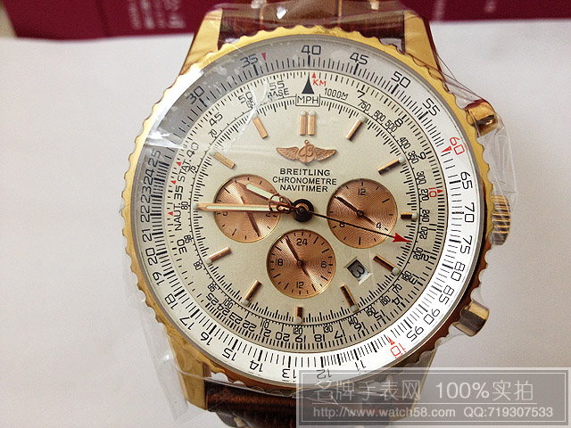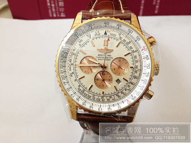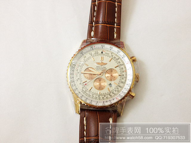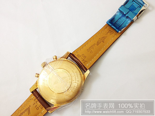 Breitling百年靈/ 18K金手錶 棕色皮帶 計時機械男錶-WATCHES845
