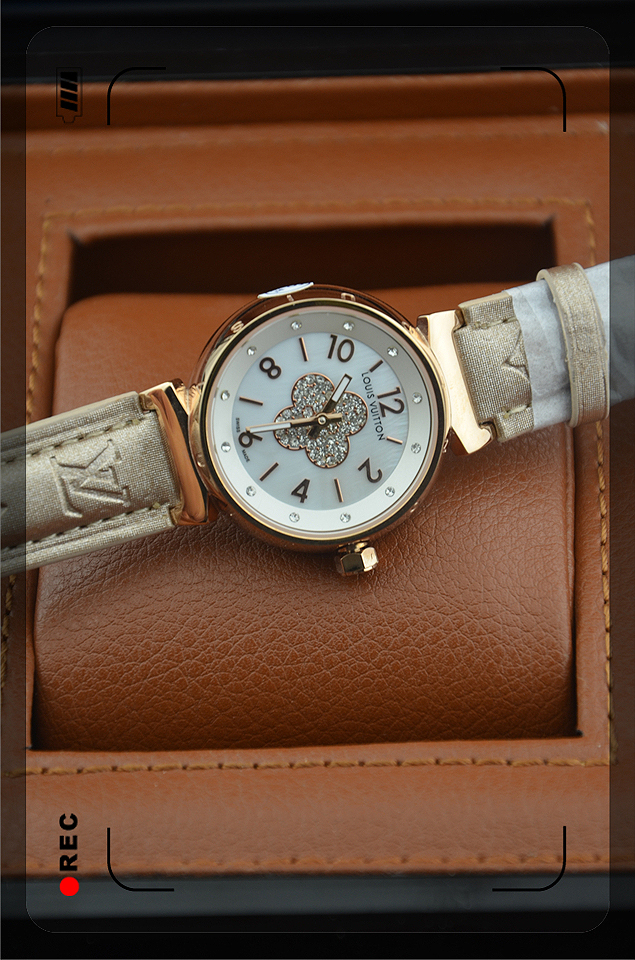 LV新款玫瑰金邊框瑞士石英女士手錶 職業女士的選擇