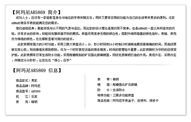 阿瑪尼AR5829男士石英手錶-WATCHES873