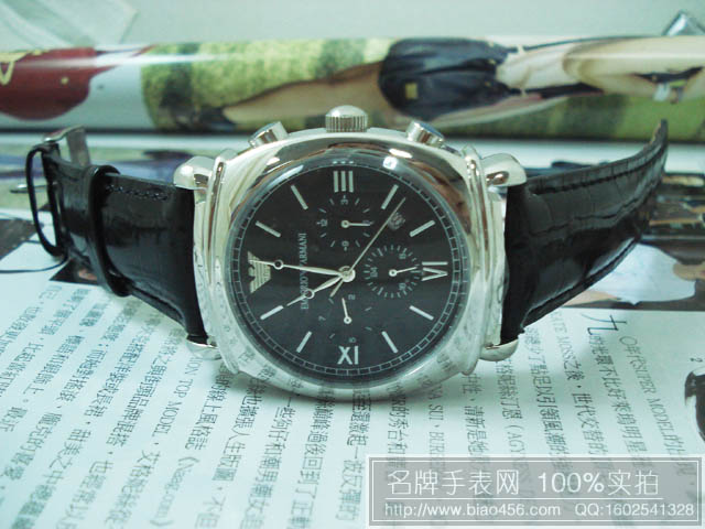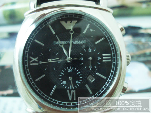 原裝阿瑪尼6針日曆計時碼錶男士機械手錶黑底-WATCHES880