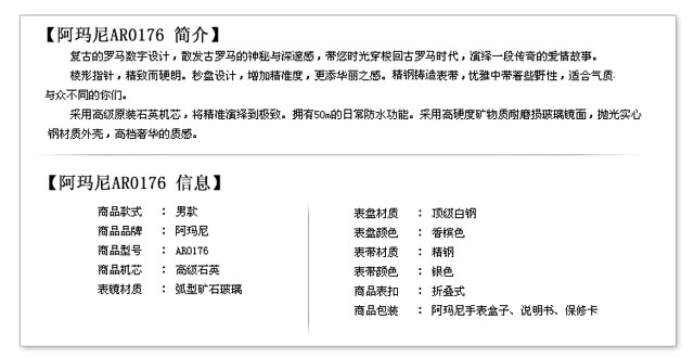 【商品編碼】: 阿瑪尼-WATCHES882