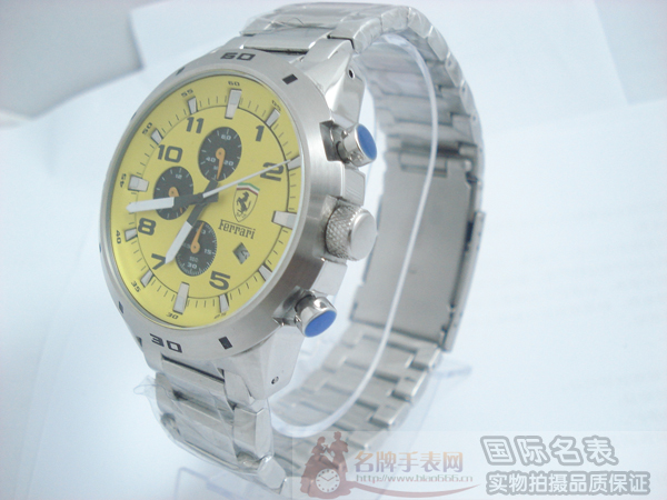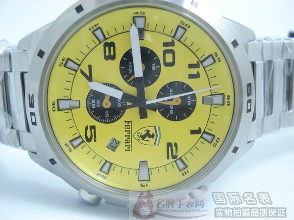 法拉利手錶Ferrari汽車錶 日本石英計時碼錶 運動男錶 黃色 夜光